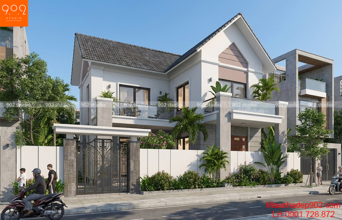 Biệt thự 2 tầng mái Thái BT221 là một trong những thiết kế nổi bật thuộc bộ sưu tập nhà hiện đại của 902 Studio trong năm 2026. Công trình sở hữu vẻ đẹp trẻ trung, thanh thoát nhưng vẫn giữ được sự bề thế và sang trọng cần có của một mẫu biệt thự phố đẳng cấp. Không phô trương, không cầu kỳ, BT221 thu hút ngay từ cái nhìn đầu tiên nhờ hình khối hiện đại, ngôn ngữ kiến trúc mạch lạc, và mái Thái truyền thống được biến tấu hài hòa theo phong cách mới.